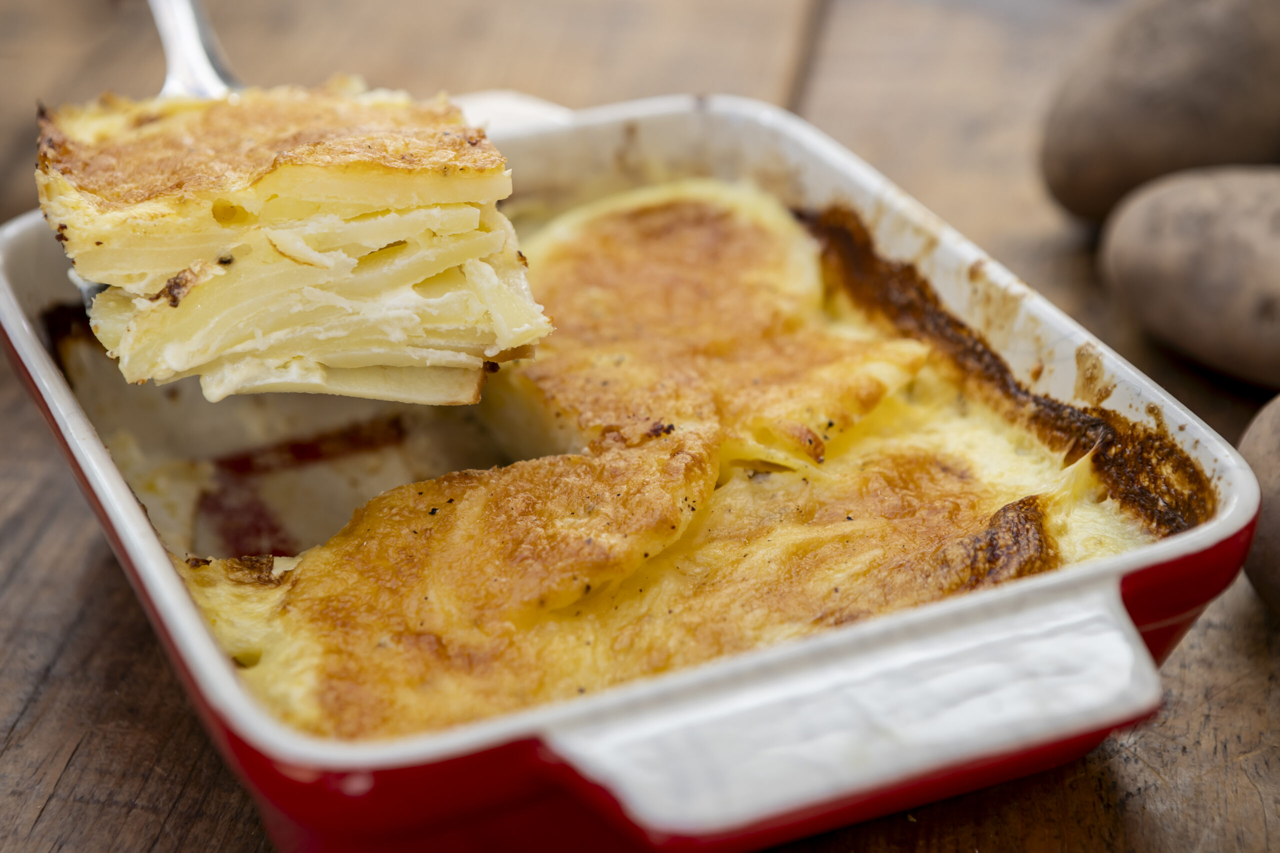 A French classic meets Northumbrian flair in this rich and velvety dish. Made with bespoke cut Particularly Good Potatoes and award-winning cheese from Doddington Dairy, it’s the perfect side for your Sunday roast or a cosy main with a crisp green salad. Using our 3mm or 5mm sliced potatoes saves time and ensures beautifully even layers every time.